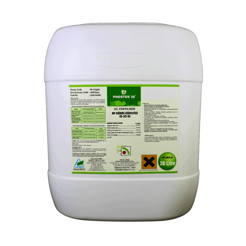 UYARI: Sera, tünel gibi kapalı alanlarda PHOSTER 38’in yapraktan uygulama dozu 100 ml/100 L su olmalıdır.